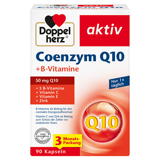 Doppelherz Coenzym Q10 + B-Vitamine enthält 5 ausgesuchte B-Vitamine, Vitamin C und E und das Spurenelement Zink. Zusätzlich enthält eine Kapsel 50mg Coenzym Q10.